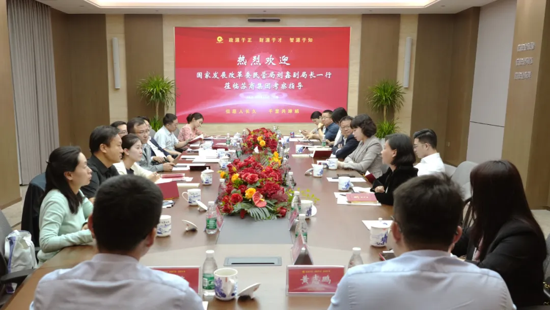 4月23日,蘇商集團董事局主席嚴昕在滬同前來調研的國家發展改革委民營局副局長劉鑫會談,雙方圍繞民營企業高質量發展深入交流。